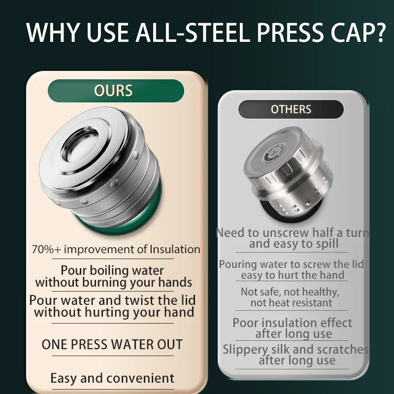 🔥 Excellent Thermal Insulation: This thermos boasts a thermal insulation performance of over 24 hours, ensuring your drinks stay hot or cold for extended periods.