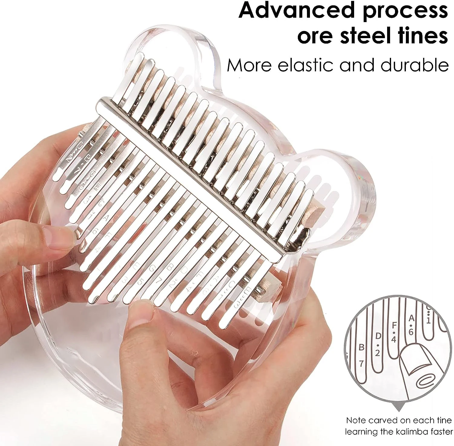 Material: High-quality clear acrylic body with ore steel tines for beautiful sound.