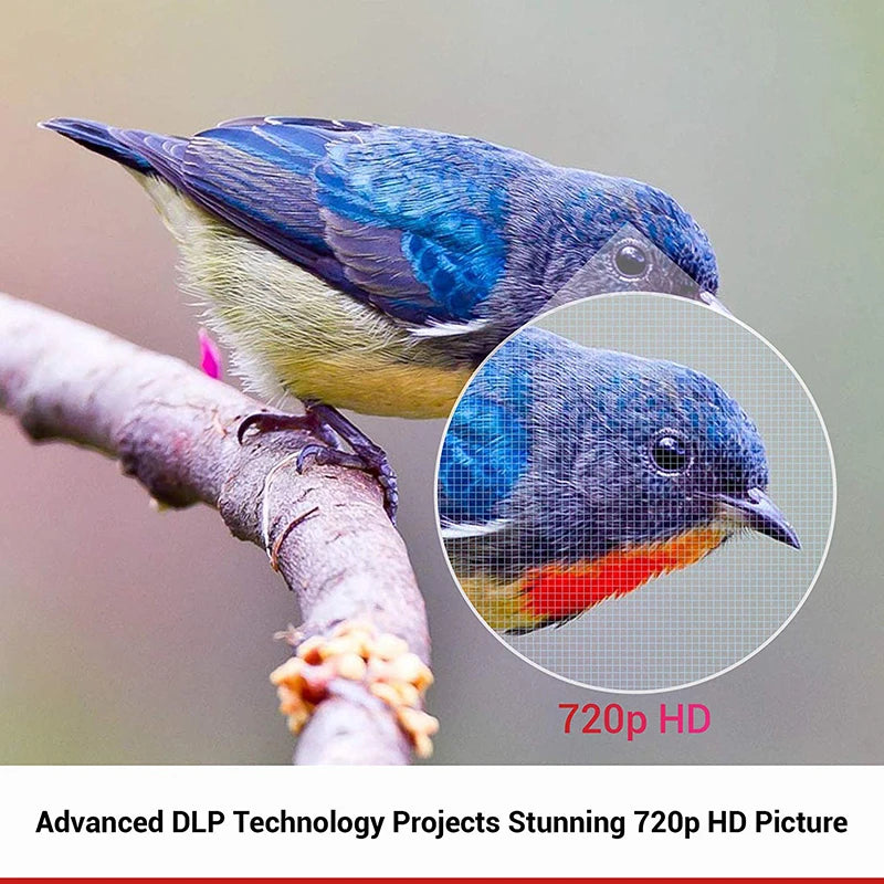 🌟 Brilliant HD Quality: Dive into a vivid 720p HD experience with advanced DLP technology, bringing your movies and presentations to life.