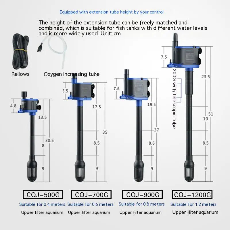 3-in-1 Submersible Aquarium Pump: Suitable for a range of aquarium sizes, from small desktop tanks to larger community setups.