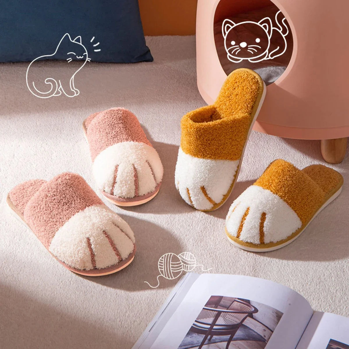 🐾 Adorable Cat Paw Design: These slippers feature a playful cat paw shape, adding a fun and charming vibe to your indoor footwear.