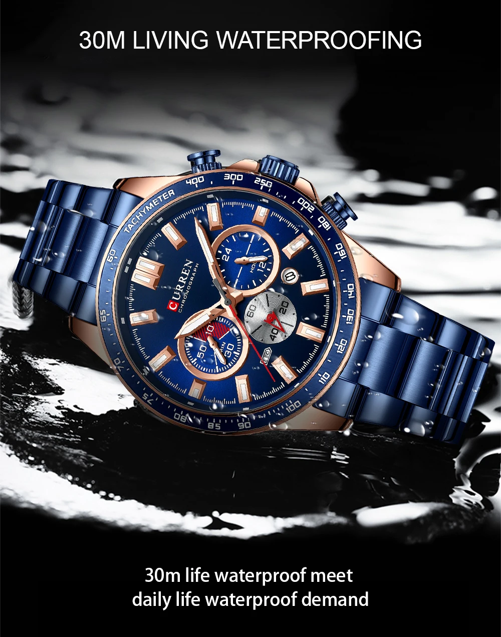 ⌚ Quartz Chronograph: Advanced timekeeping with precise chronograph functions.