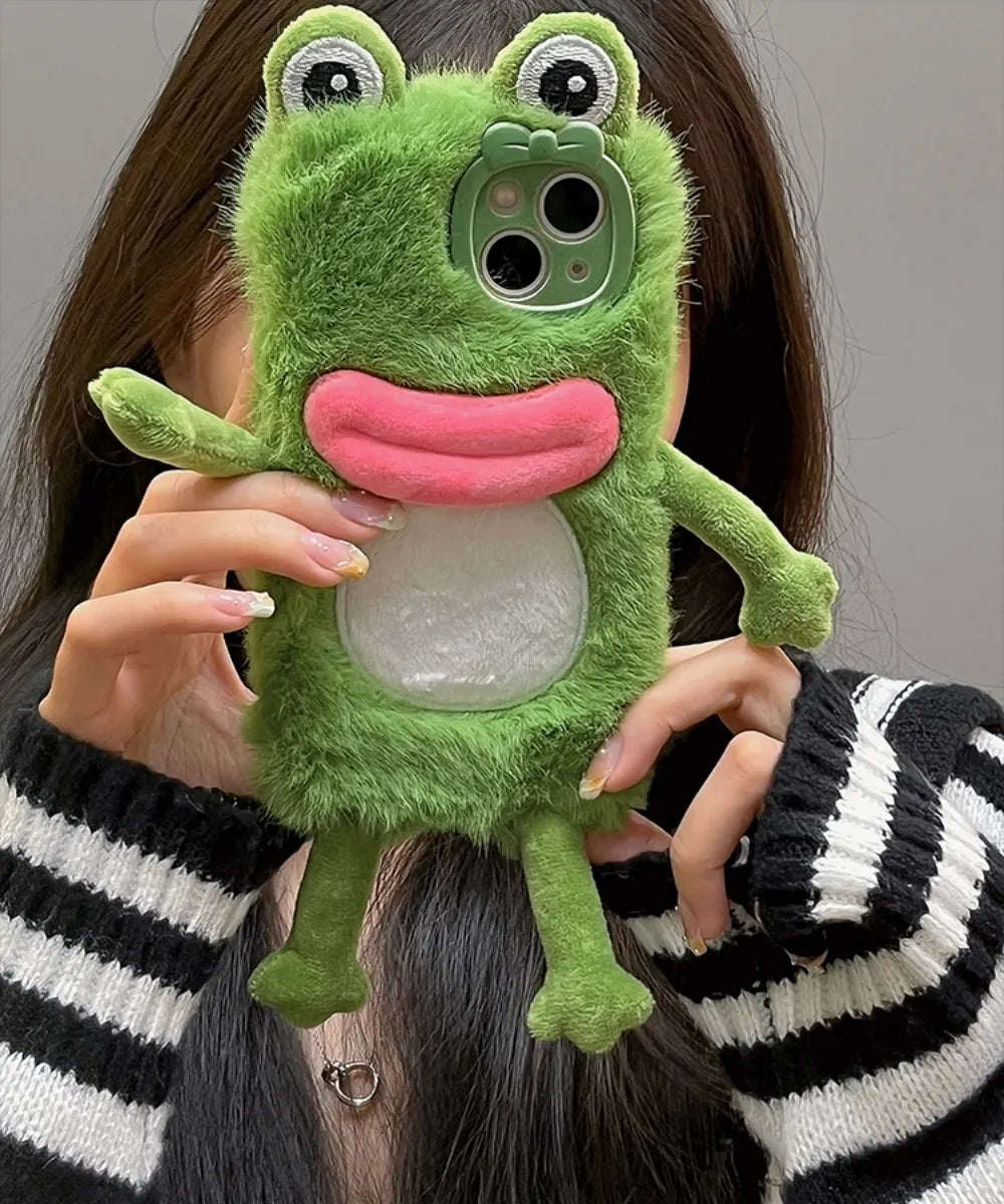 Design: A delightful Cartoon-style frog with a soft fur case design.