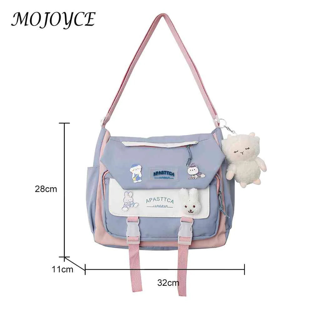 🎀 Cute & Trendy Accents: Adorned with a charming plush pendant and pin, this bag adds a touch of kawaii charm to any outfit.