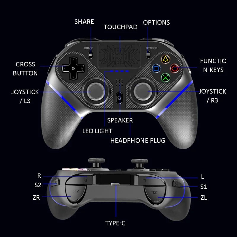 🎮 High-Precision Gaming: The Bluetooth Game Controller for PlayStation 4 and PC offers 360-degree high-precision joysticks for ultimate control.