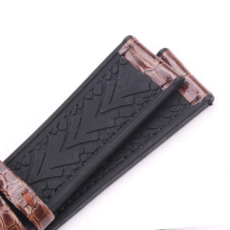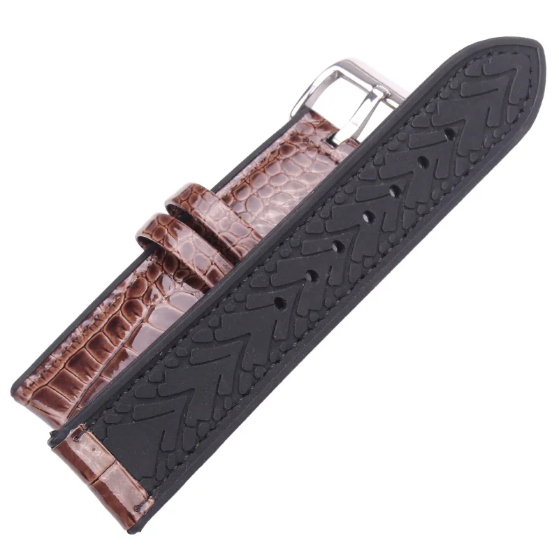 🧵 Durable Genuine Leather & Rubber Construction: This Genuine Leather & Rubber Waterproof Watchband combines the elegance of leather with the durability of rubber, making it ideal for everyday use and diving.