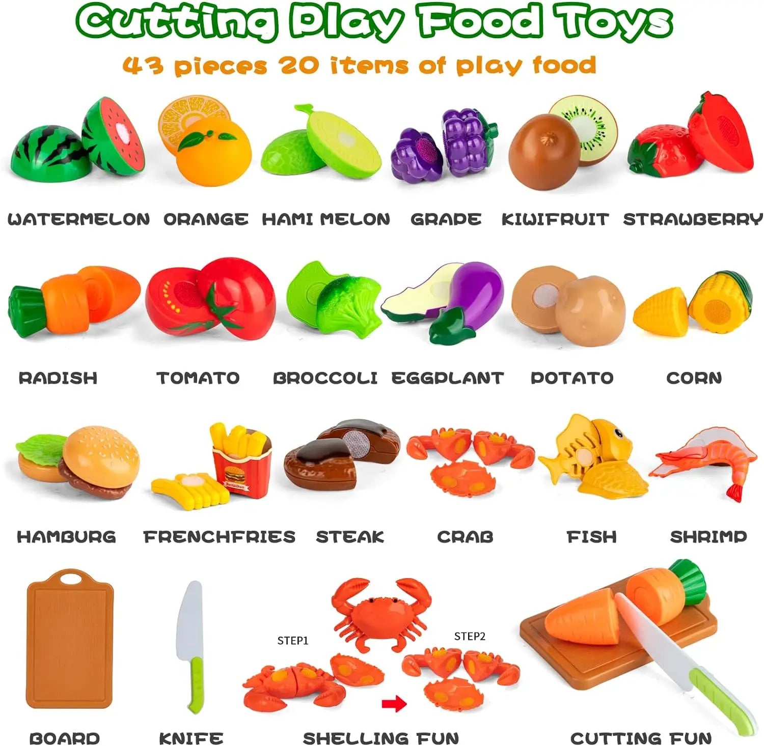 🥦 Cut and Play Food Sets - Includes a variety of colorful, cuttable food items that enhance motor skills through fun play.