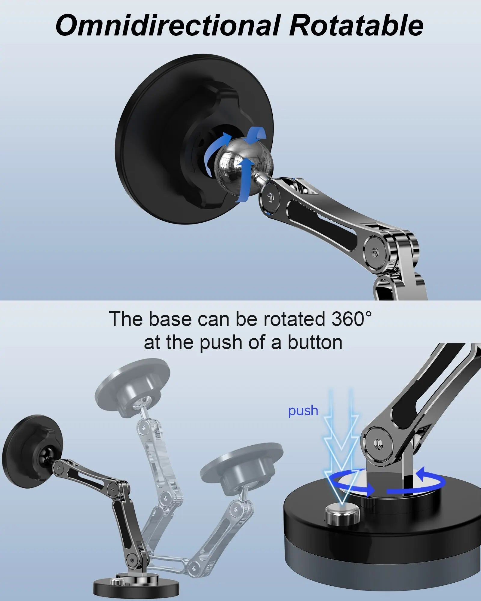 🔄 360° Views: Navigate with ease thanks to the 360° rotation and adjustable arm, providing the perfect viewing angle for maps, calls, or music, all while keeping your hands free and your focus on the road.