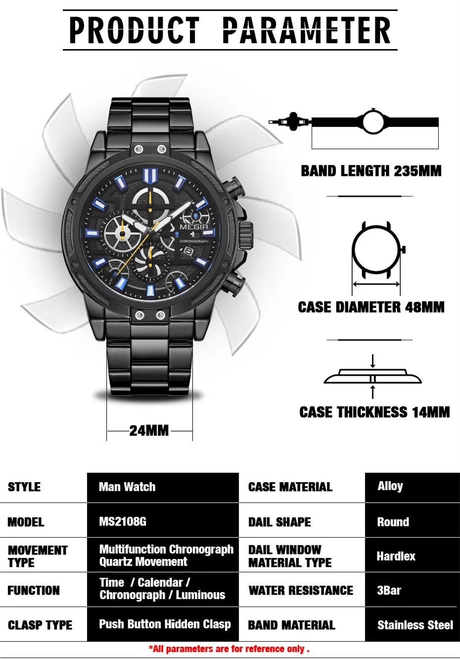 🎁 Perfect Gift: Comes in an elegant black MEGIR-branded box, ready for gifting.
