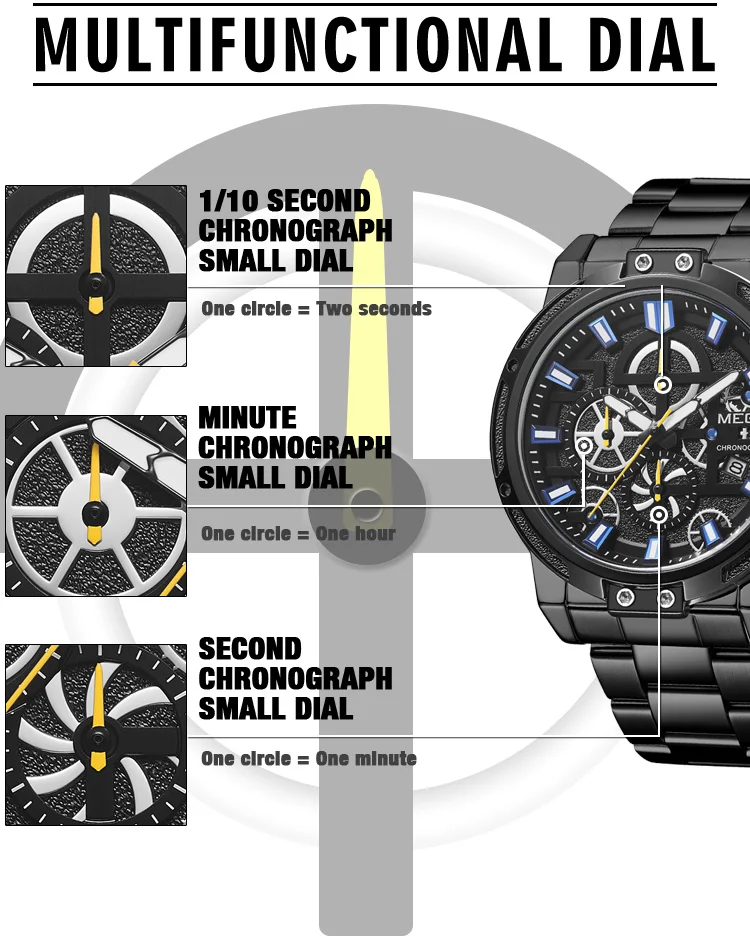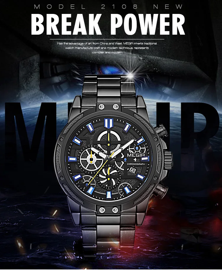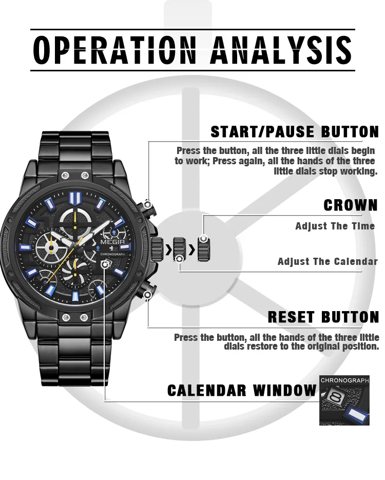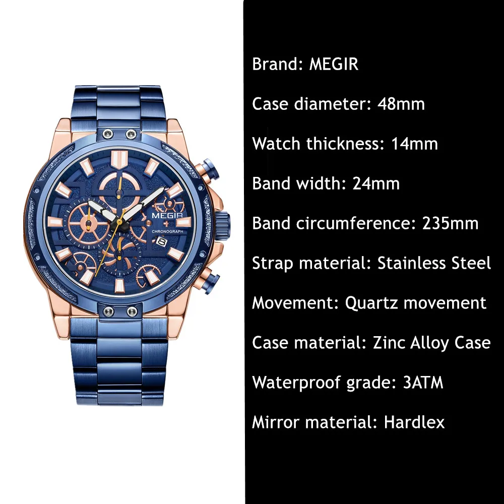 🌟 Elegant Luxury: MEGIR's Quartz Watch combines luxury, business, and casual style.
