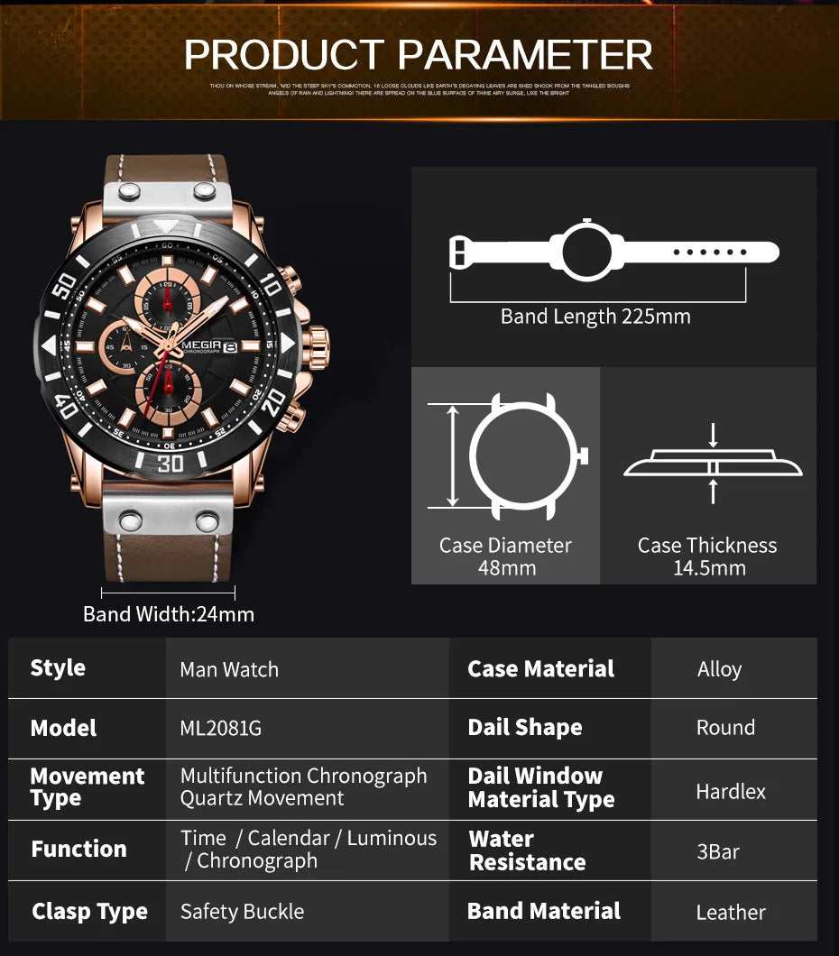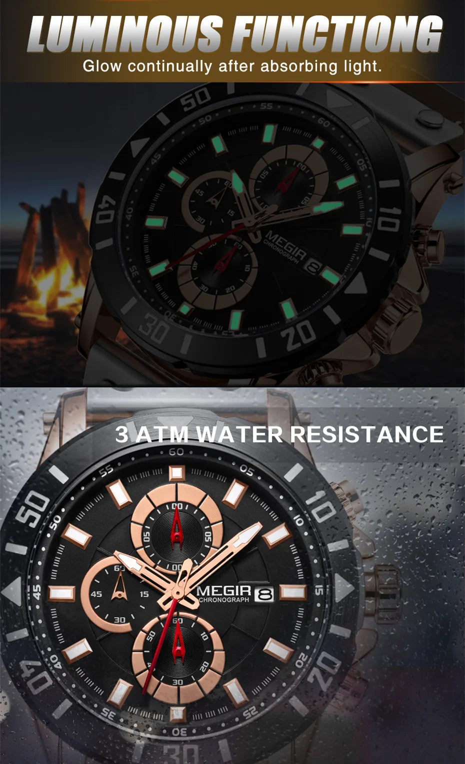 🎖️ Military Elegance: MEGIR's sport watch blends fashion and casual style with a military edge.