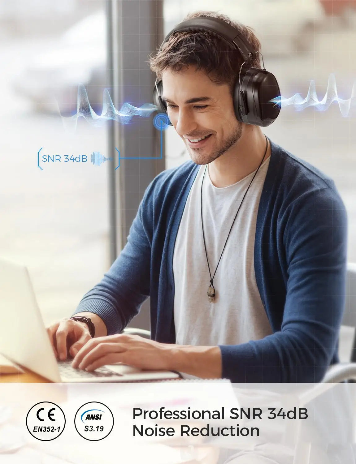 Noise Reduction Rating: NNR 28dB/SNR 34dB for effective sound blocking.