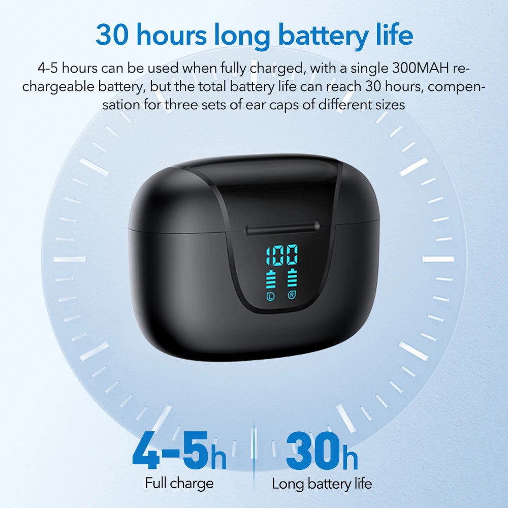 Charging Case: Includes a charging case with LED display for battery status.