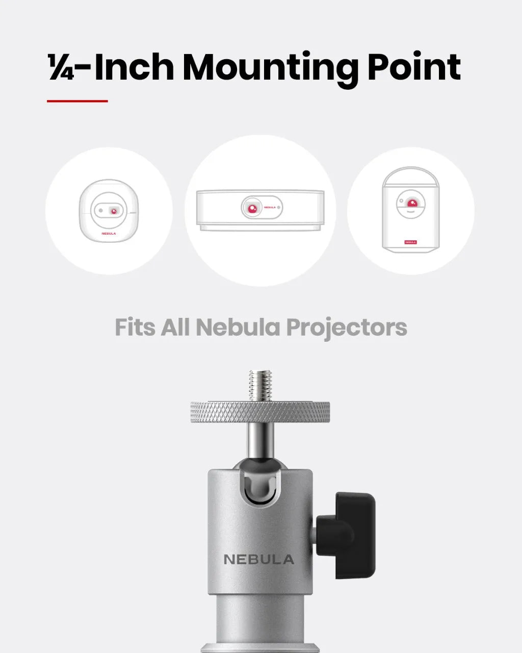 🌐 Universal Compatibility: Effortlessly mount any Nebula projector using the ¼-inch universal mount.