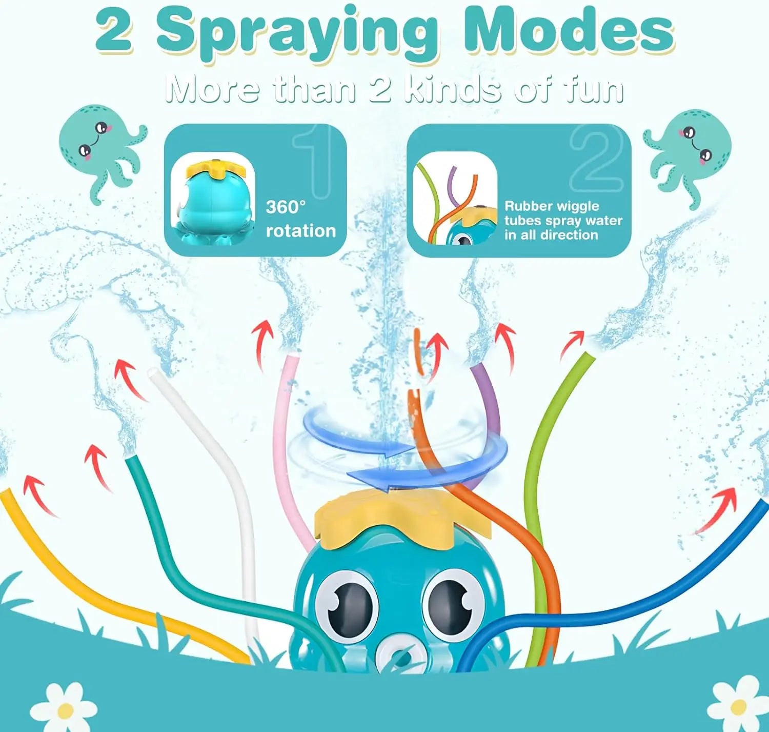 🐙 Kids' Octopus Water Sprinkler – Dive into fun with this adorable octopus sprinkler, featuring 8 colorful wiggle tubes that spray water in every direction!
