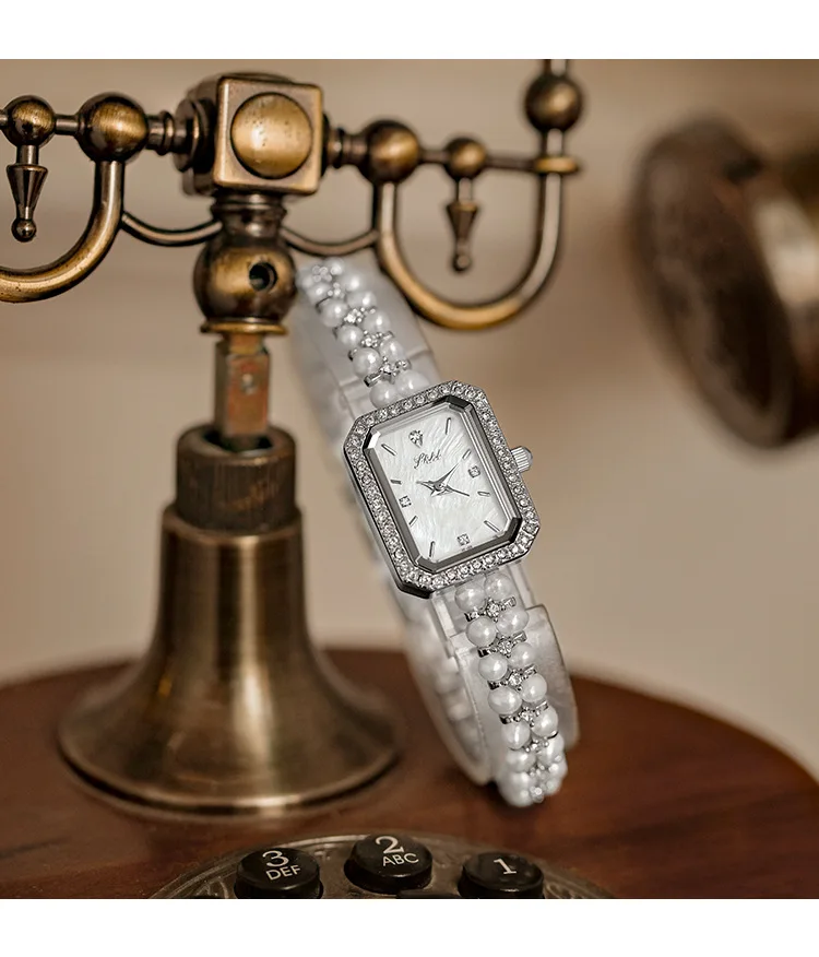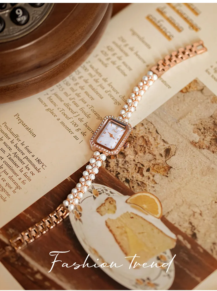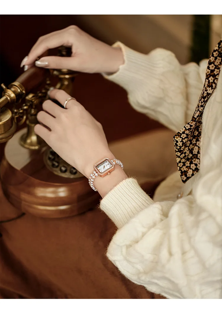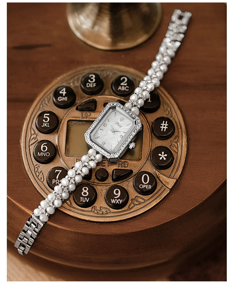 🌟 Vintage Pearls Ladies' Watch – Merges retro charm with a luxurious twist, featuring a classic square dial adorned with pearls.