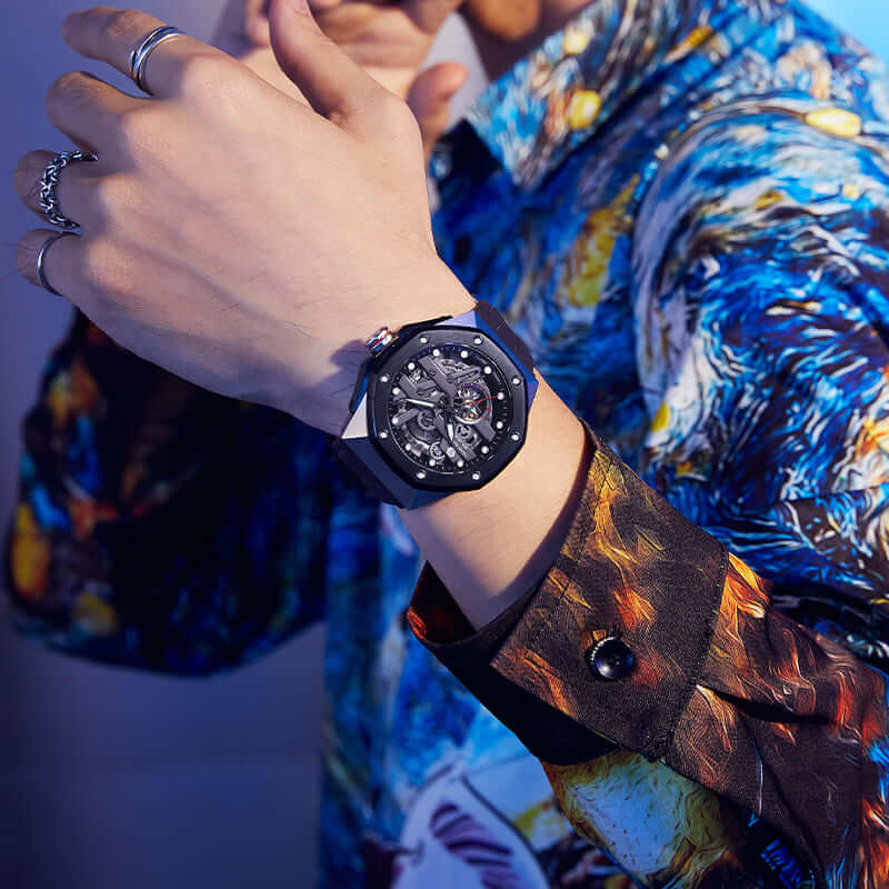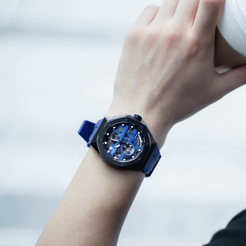 Grade A Luminous The watch's hands and markers are made with premium luminescent material, ensuring legibility in any lighting, from urban evenings to nights under the stars. The luminous feature of the watch provides a continuous glow, keeping time visible even in the absence of sunlight.