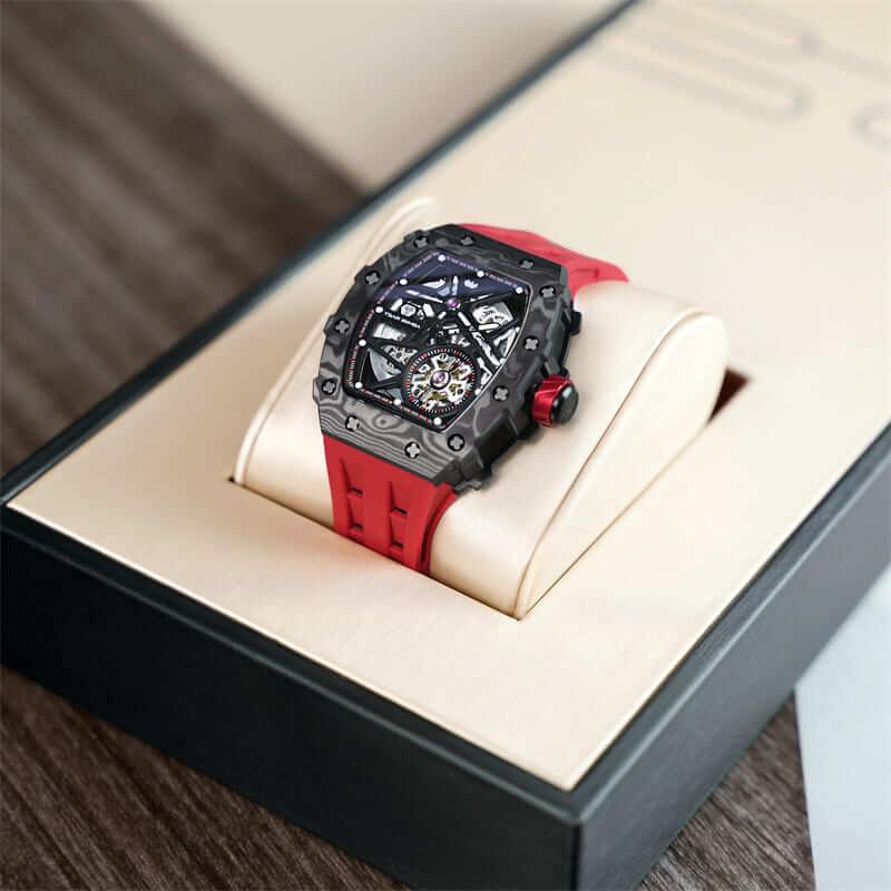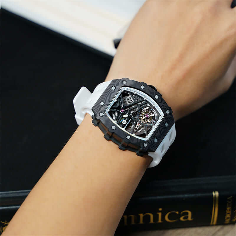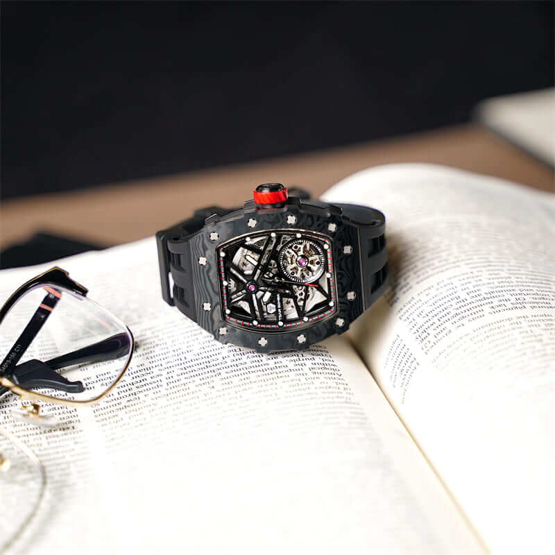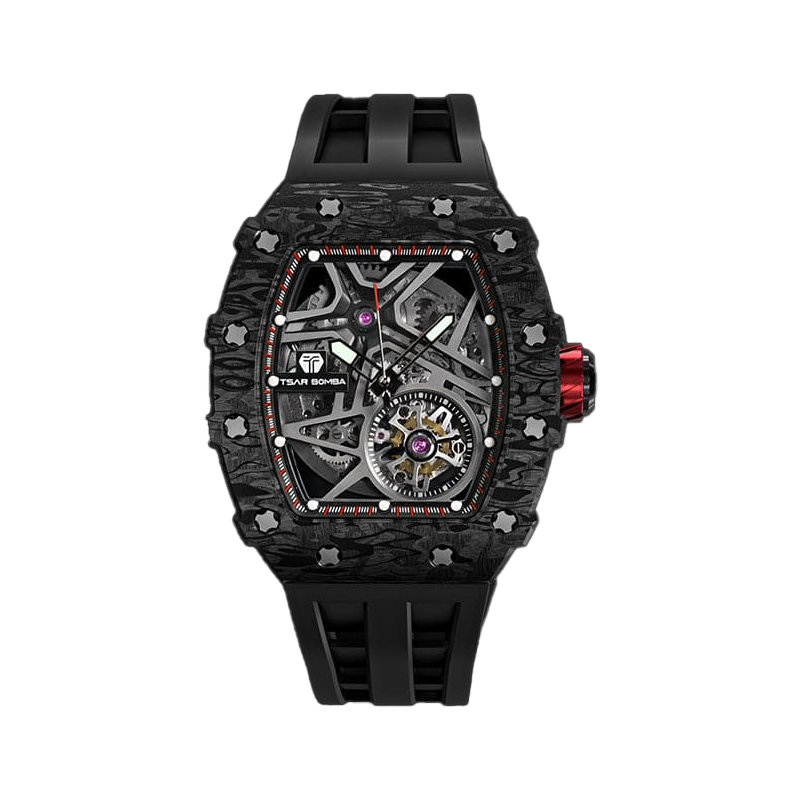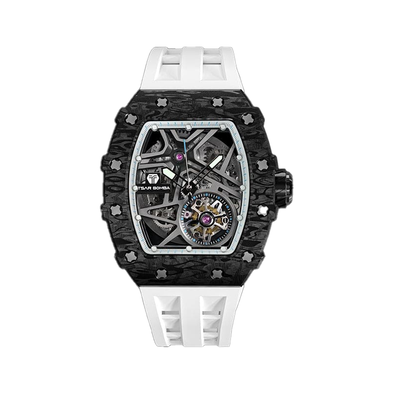 Carbon Fiber Bezel The carbon fiber casing boosts the watch's robustness while infusing it with contemporary elegance. This timepiece represents the pinnacle of style and functionality, combining precise engineering with a refined design. Upgrade your wristwear and step into the future of watchmaking with this carbon fiber-accented wonder. |