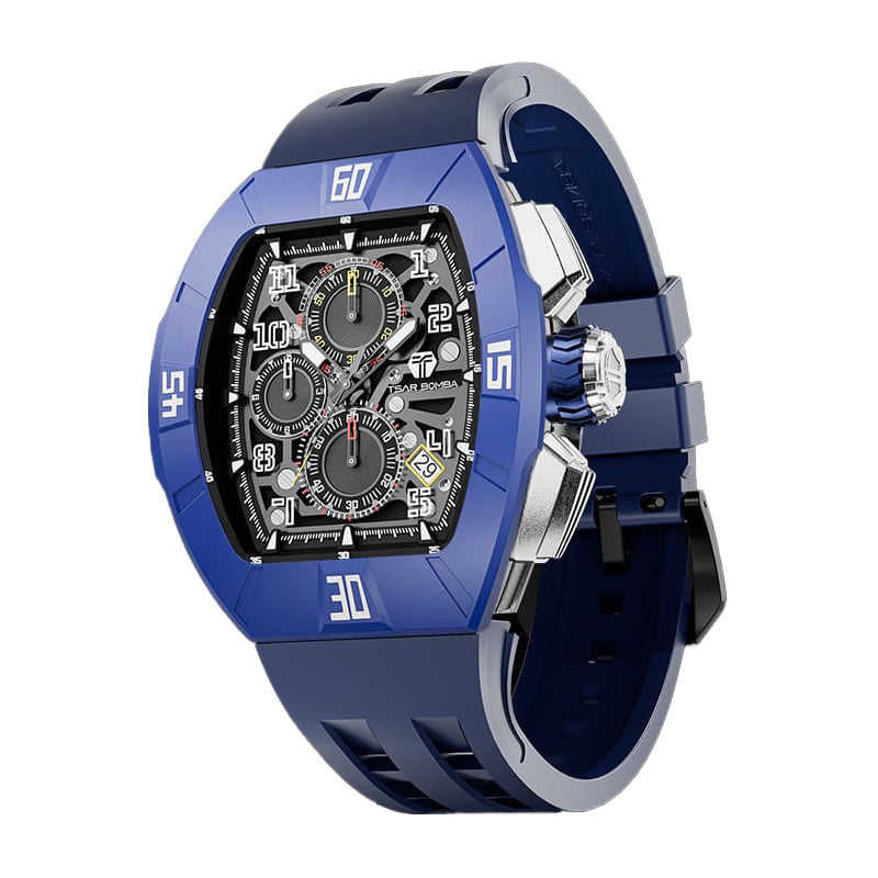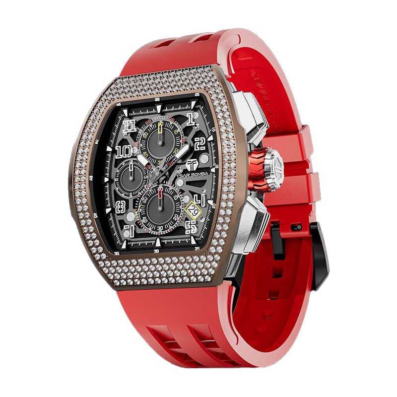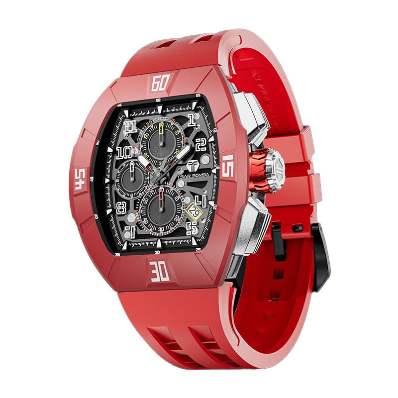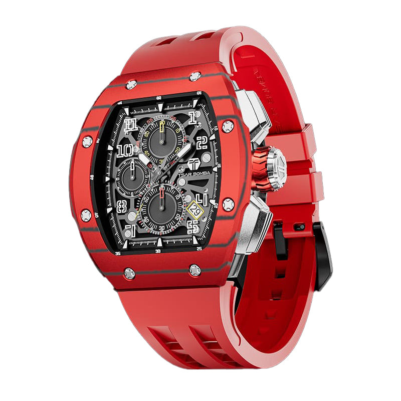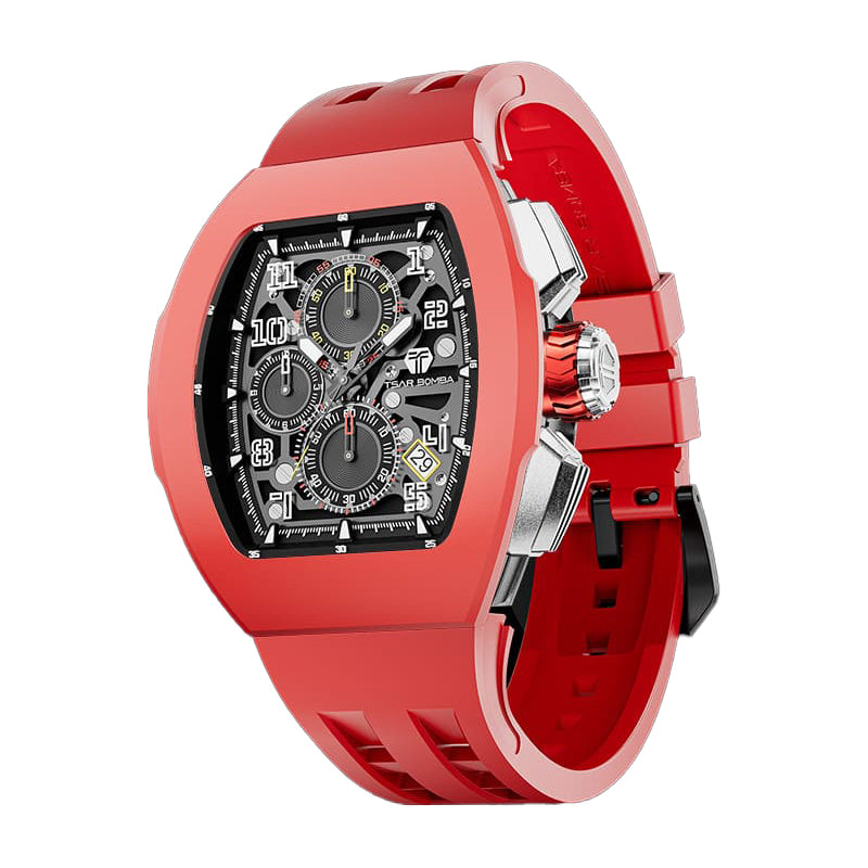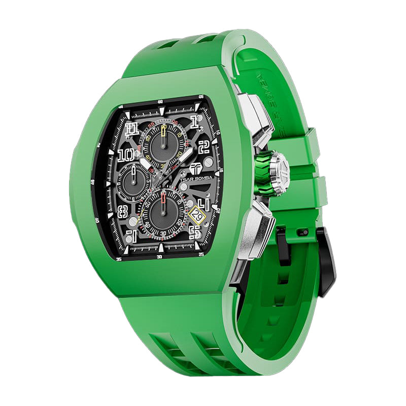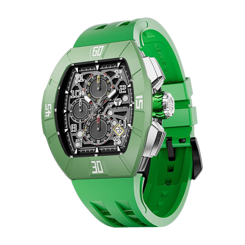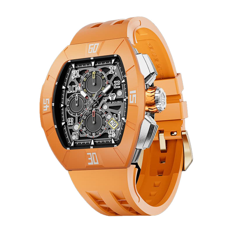 The Colorful Fluororubber Strap The luxurious fluororubber strap and bezel, both comfortable and resistant to oxidation, come in a range of colors. This variety enables you to display diverse styles for different occasions.of comfort and style with this fluororubber strap. |
