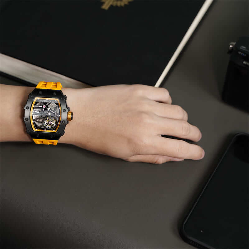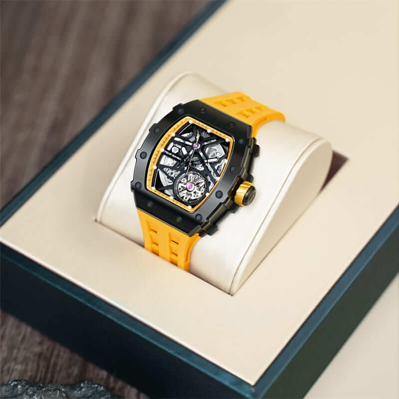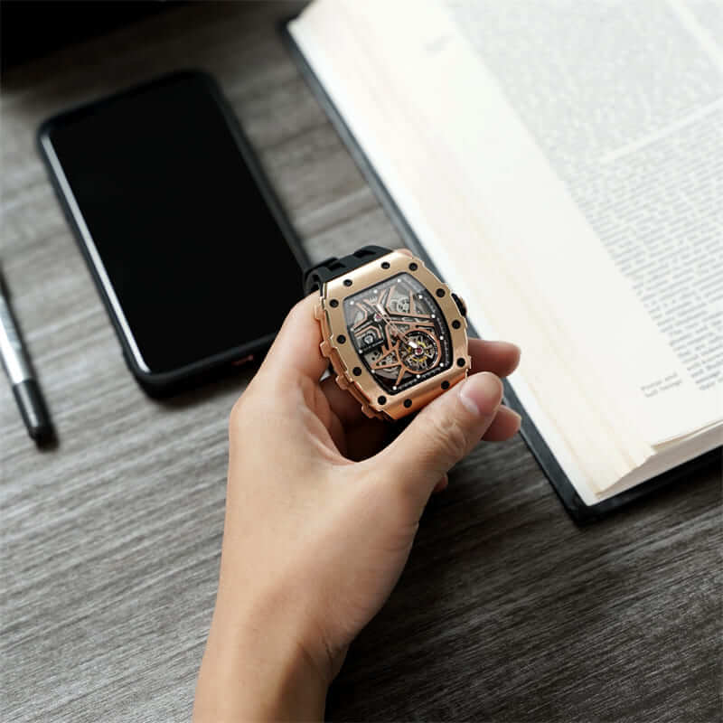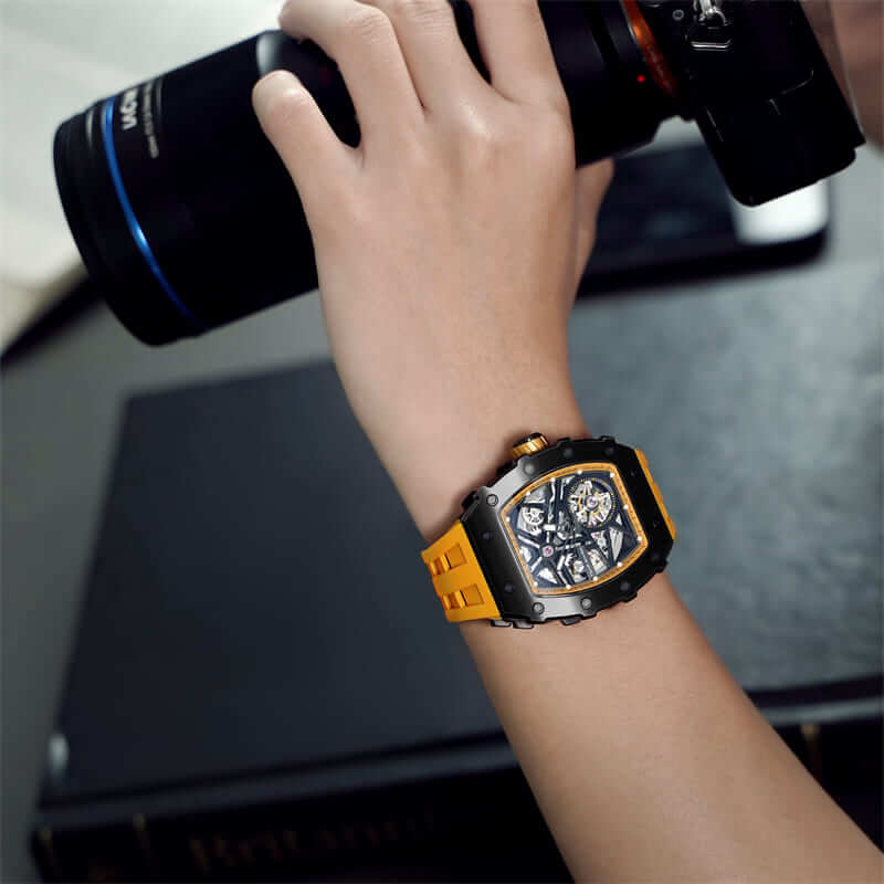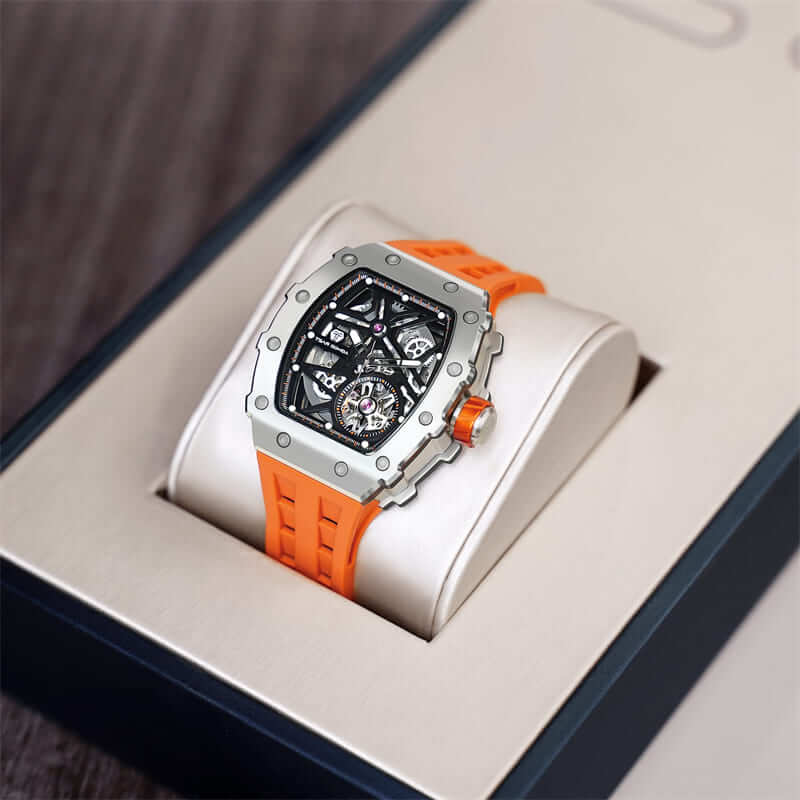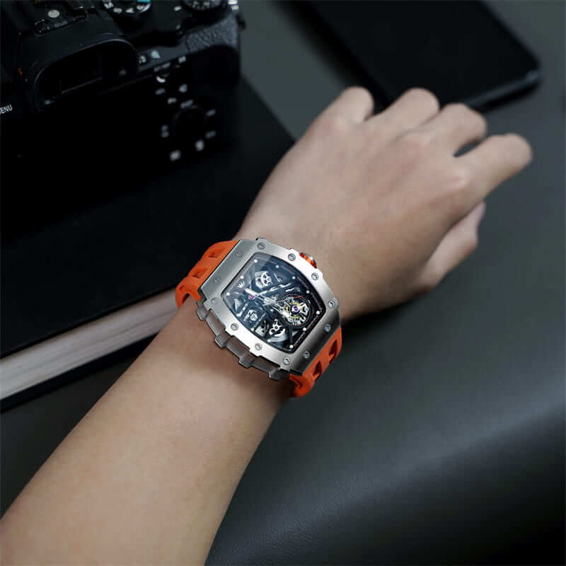 316L Stainless Steel The watch's case is crafted from 316L stainless steel, signifying both strength and sophistication. Its glossy finish enhances visual appeal and provides superior wear resistance. This case is more than protection; it symbolizes enduring quality and stylish design. |