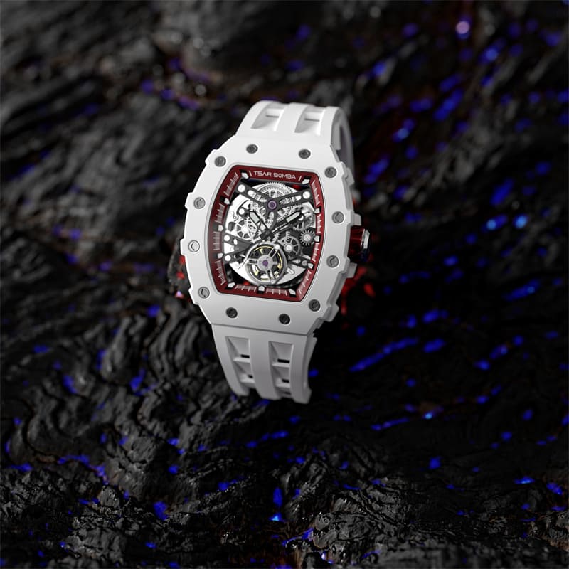 Ceramic Bezel The ceramic bezel on mechanical watches combines contemporary style with robustness. Crafted with precision, these bezels are resistant to scratches, lightweight, and have a refined look. Their sleek design and durability make ceramic a popular choice in modern watchmaking. |