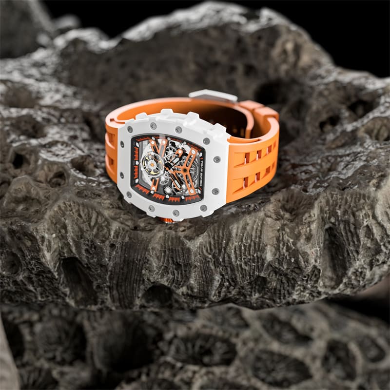 Fluororubber Strap Fluororubber is known for its exceptional durability, resilient in all conditions. Its soft and comfortable texture gently wraps around your wrist, much like a second skin, making it perfect for long-term wear. Upgrade your watch with this state-of-the-art fluororubber strap, a seamless blend of comfort and elegance for the sophisticated watch enthusiast. |