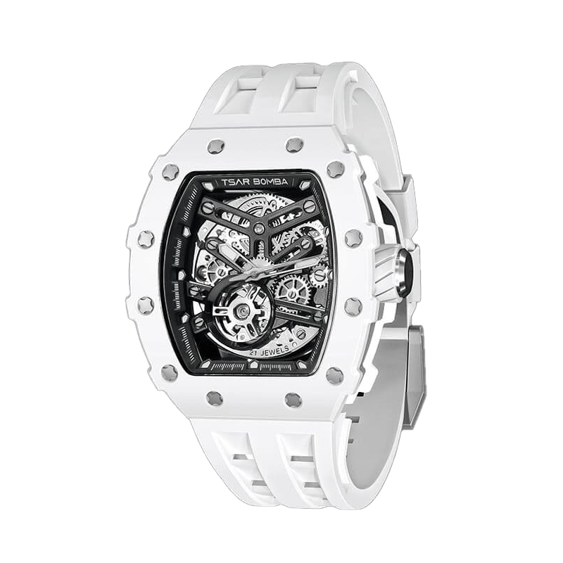 Skeleton Dial The detailed cut-out design of this watch offers a unique view into its mechanical workings. Each gear, spring, and element is carefully crafted and arranged, creating a harmonious blend of subtle movement and precise timekeeping. The dial, while complex in its functionality, radiates elegance through its minimalist aesthetic. |