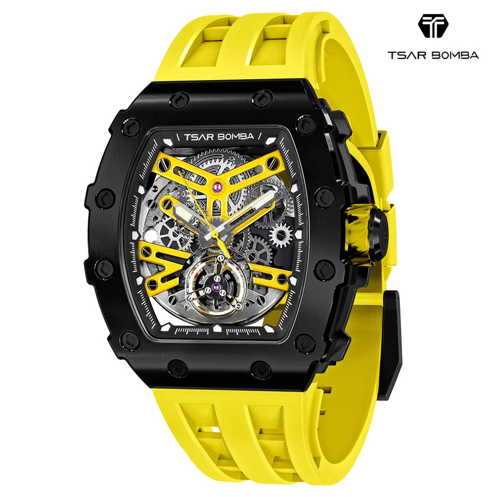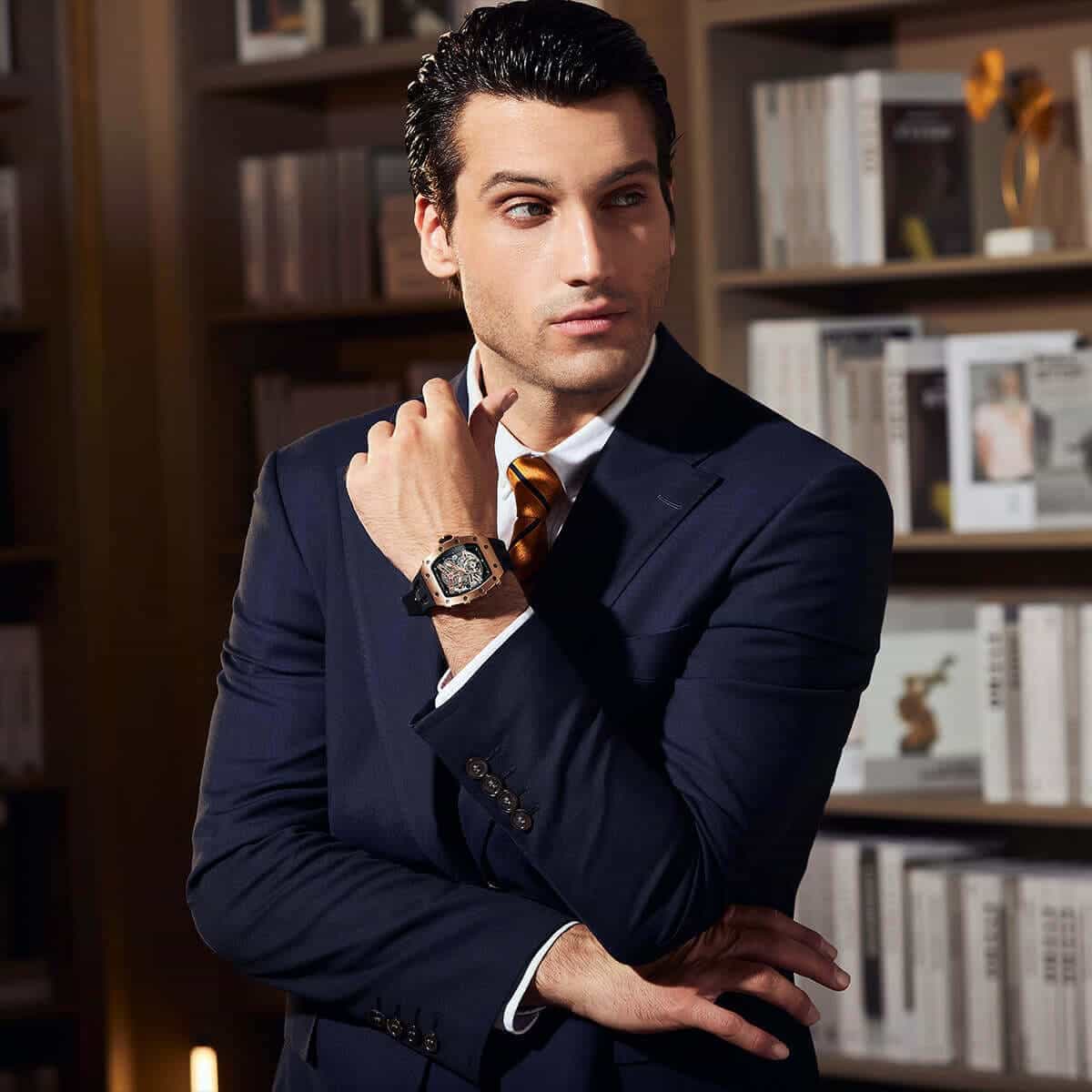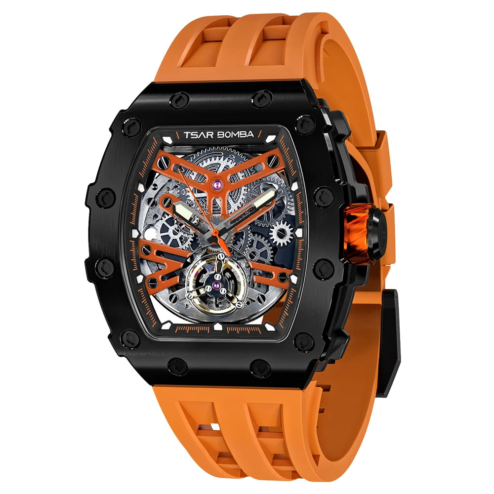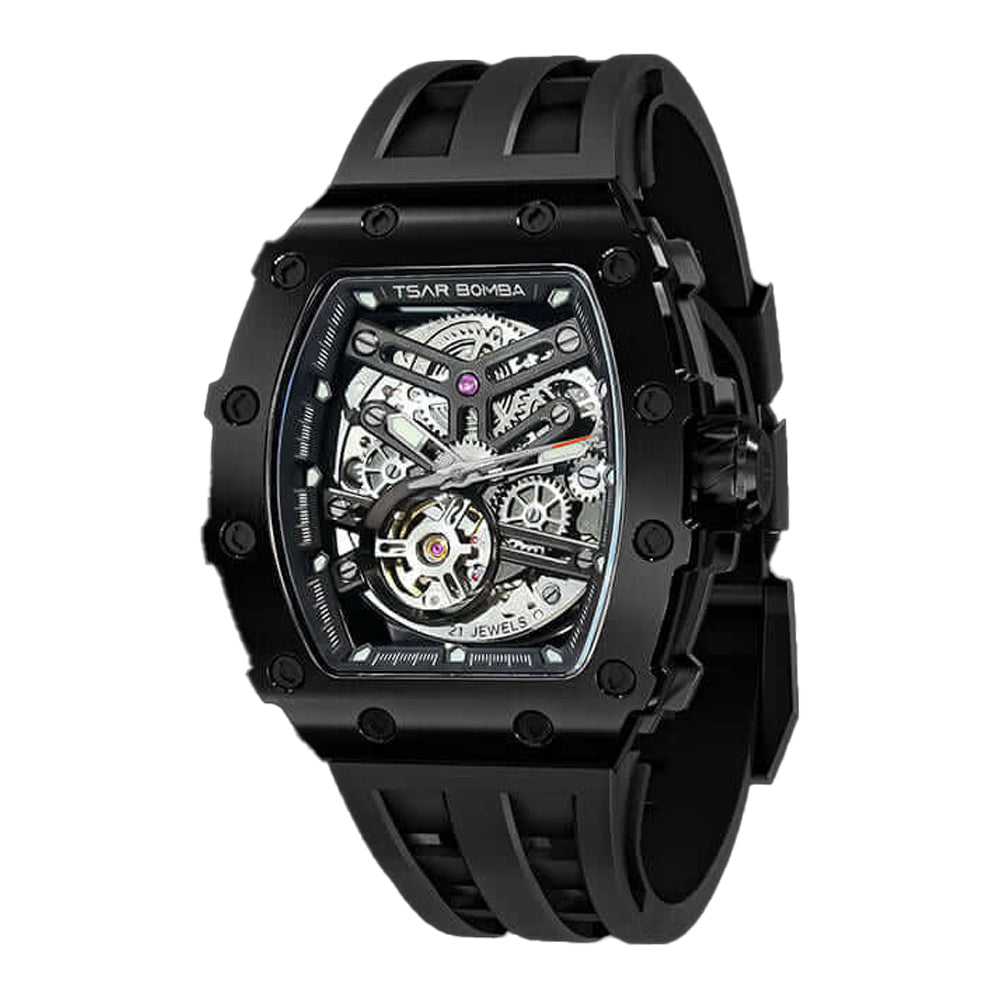 Skeleton Dial The watch's cut-out design artistically reveals its mechanical heart, where every gear and spring is finely crafted. These components gracefully synchronize, ensuring accurate timekeeping. Despite its complex mechanics, the dial charms with its simple elegance.