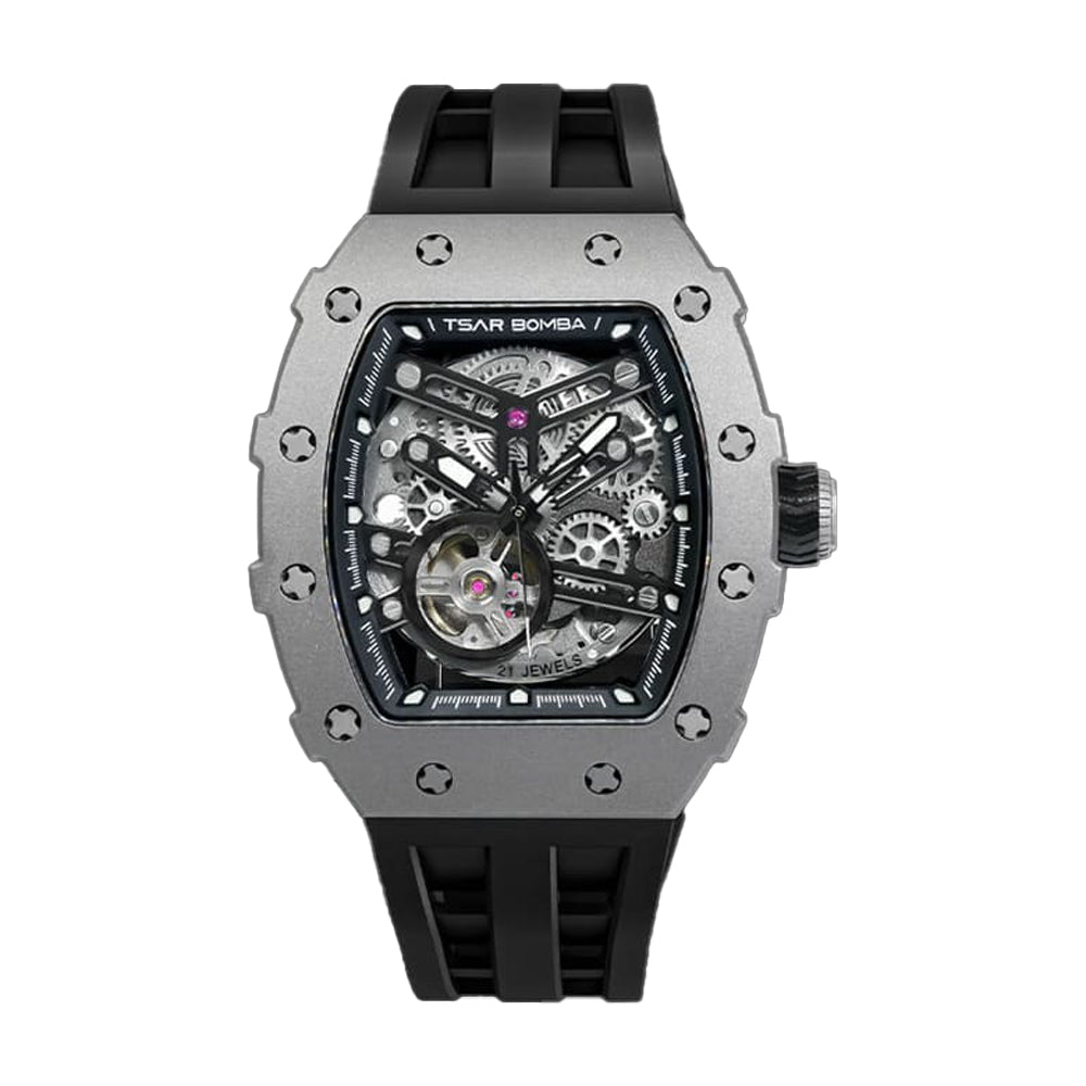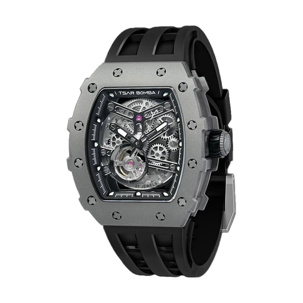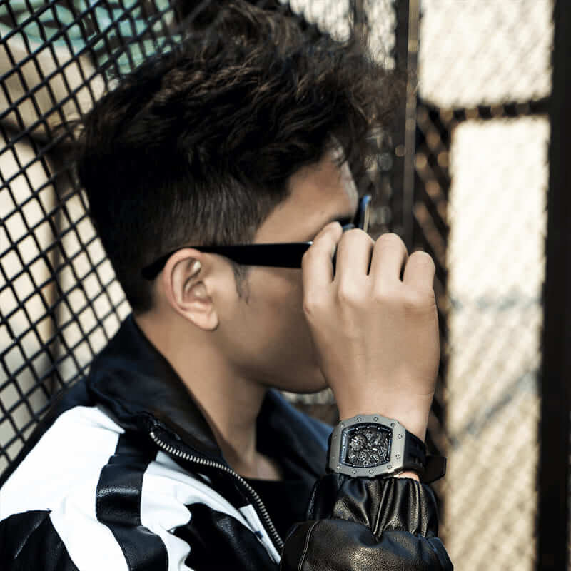 Timeless Fusion The watch's mechanical movement brings a classic touch to its contemporary design, embodying sophisticated craftsmanship. Blending cutting-edge materials with time-honored mechanics, it's an ideal accessory for the modern individual valuing both style and longevity. |