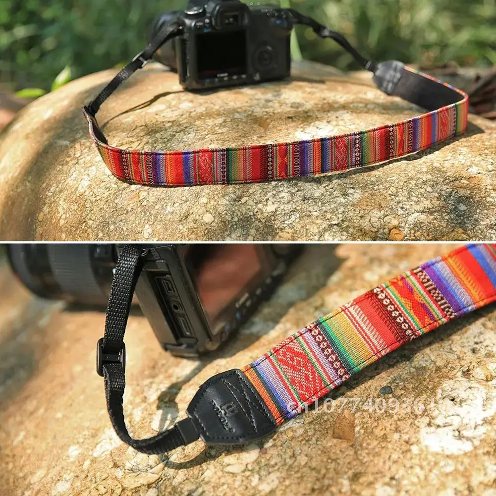 🎨 Stylish Design: Featuring a multi-color, ethnic retro pattern, this strap adds a unique and fashionable touch to your photography gear.