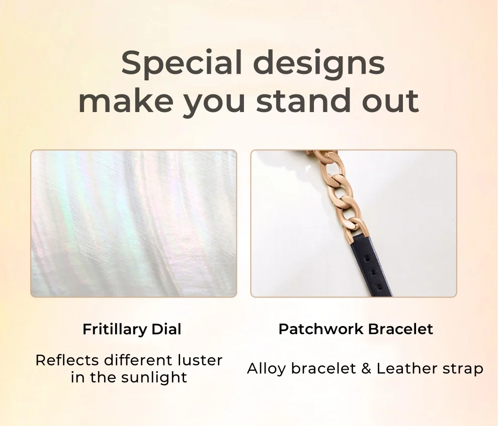 🌼 Alloy and Real Leather Band – Offers a blend of durability and comfort with its stylish alloy and soft leather band.